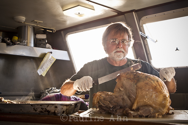 We ate turkey, actually two of them. Whole ones, that Dana cooked in a tiny oven. With dressing and all the fixings, she was amazing. And the kids did the dishes, and had fun. Everybody helps out on these trips.